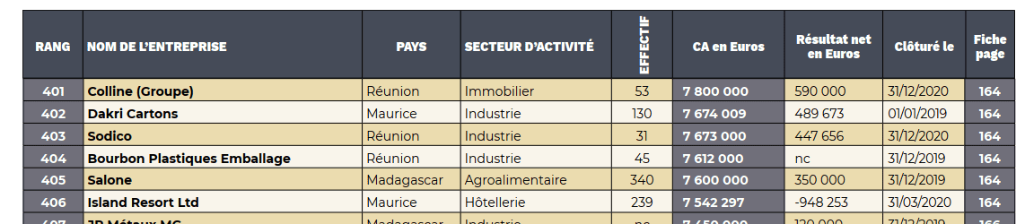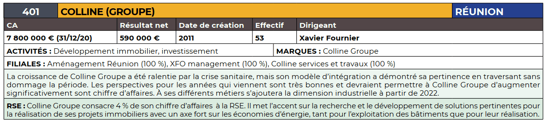 Colline Groupe is proud to announce that it is the 401st of the 500 most important companies on the Indian Ocean.